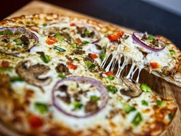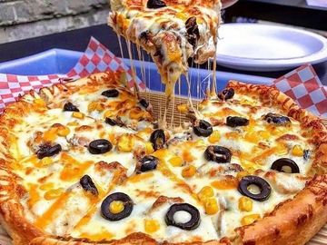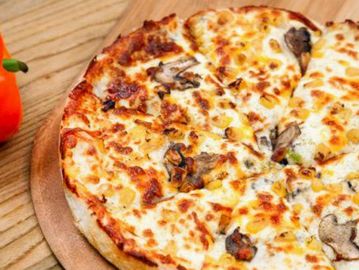 Corn, Onion, Green & Red Pepper, Mushroom, Olives, Mozzarella Cheese