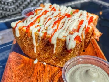 Topped with: Special White Sauce, BBQ Sauce and Oregano