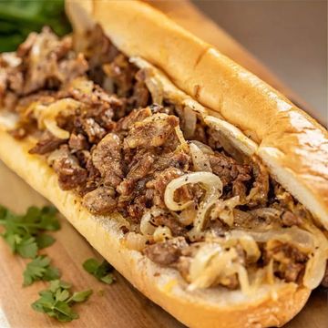 Angus Steak Strips, Mushrooms, Caramelized Onions, Green Peppers and Cheese