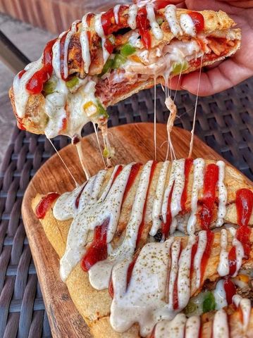 Topped with: Garlic Sauce, Ketchup and Oregano